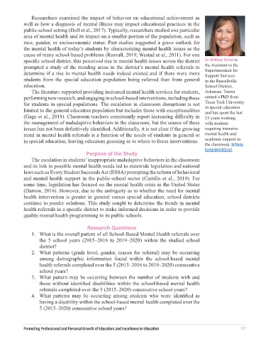 The literature supported providing increased mental health services for students, Arkansas. Turner