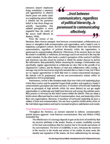 growth became apparent—trust between communicators. Hoy and Miskel (1982)