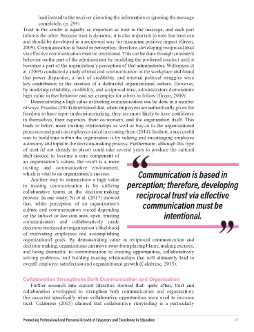 2009). Communication is based in perception; therefore, developing reciprocal trust