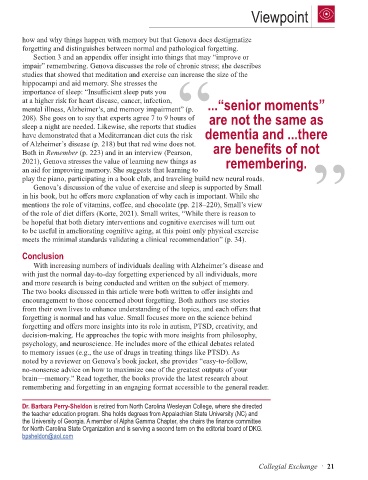 impair” remembering. Genova discusses the role of chronic stress; she describes