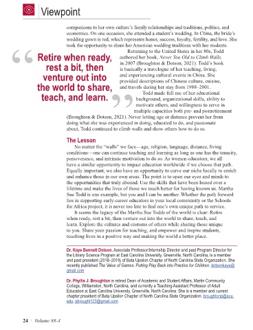 Retire when ready, authored her book, Never Too Old to Climb Walls,