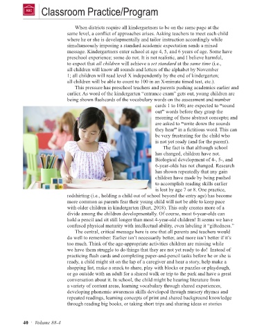 preschool experience; some do not. It is not realistic, and I believe harmful,