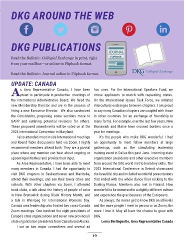 visit DKG chapters in Saskatchewan and Manitoba, the beautiful city and included wonderful presentations